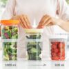 Set vključuje 4 posode različnih velikosti, kamor lahko shranimo različne vrste hrane.